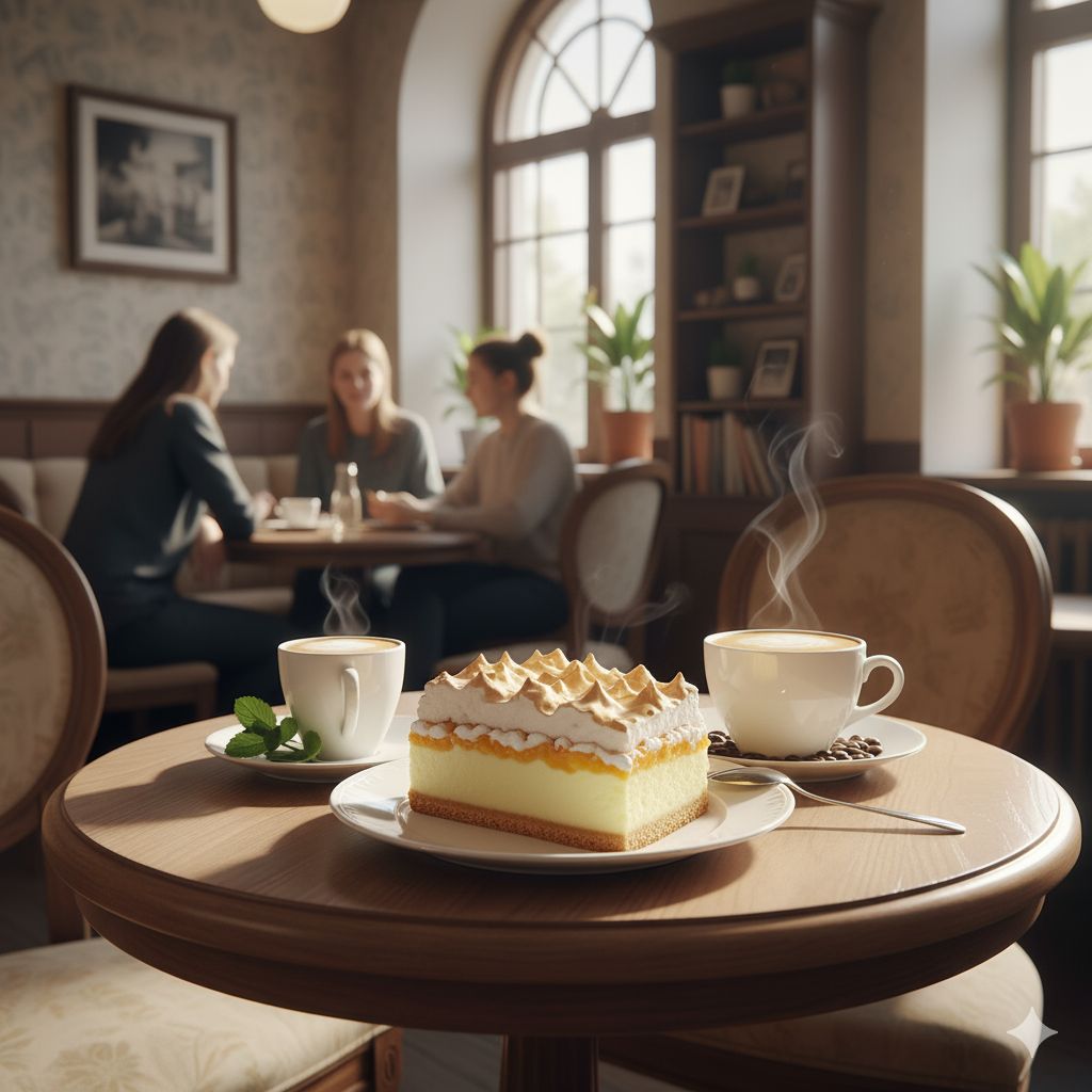 Igazi kellemes, kertvárosi cukrászda, amibe belépünk a melegen sütő októberi napfényben.